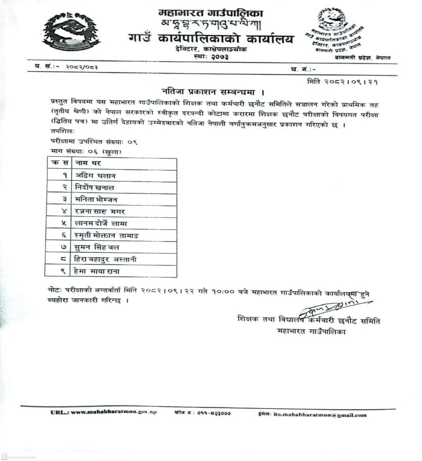 नतिजा प्रकाशन सम्बन्धि सूचना ।