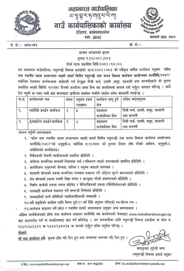प्रस्ताव आव्हान सम्बन्धी सूचना।