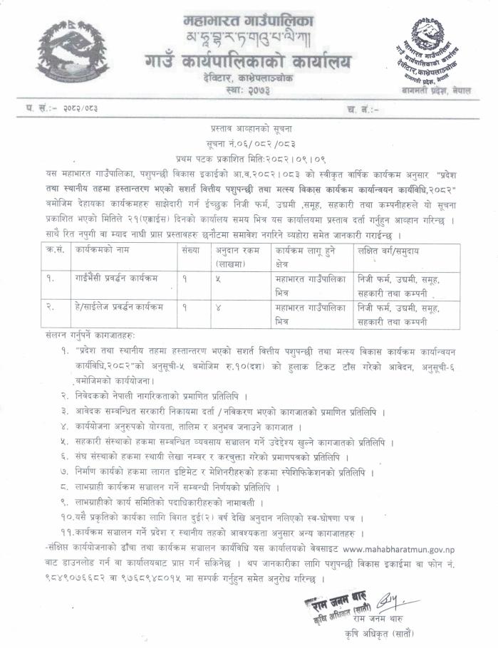 प्रस्ताव आव्हान सम्बन्धी सूचना ।