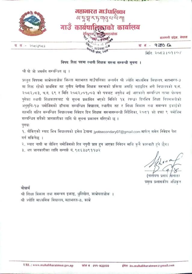 रिक्त पदमा स्थायी शिक्षक सरुवा सम्बन्धी सूचना।