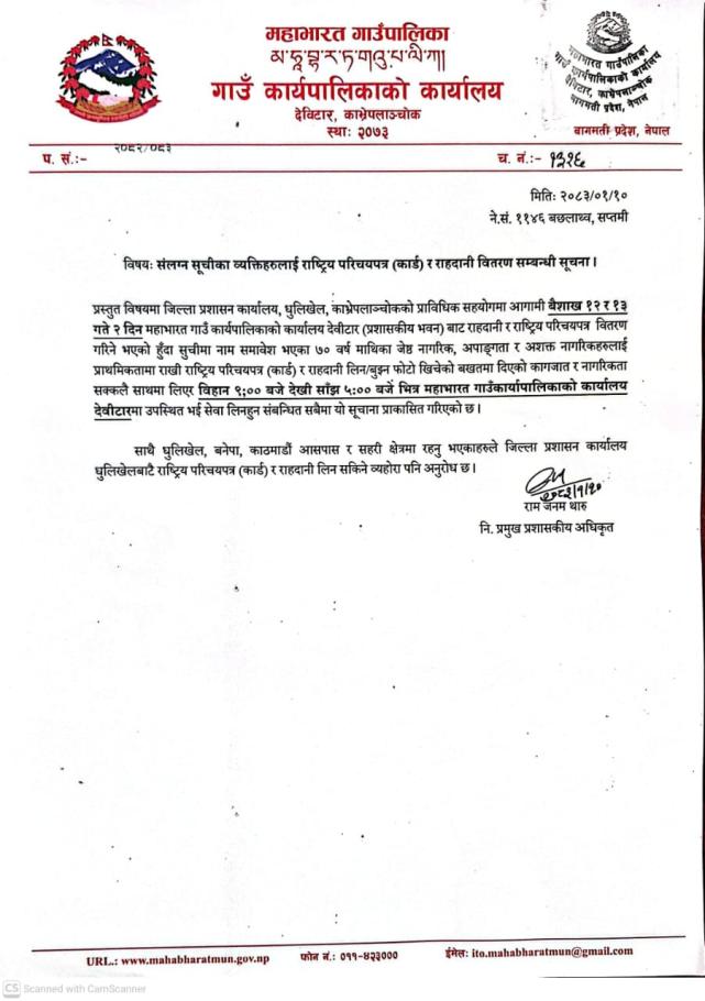 संलग्‍न सूचिका व्यक्तिहरुलाई राष्ट्रिय परिचयपत्र (कार्ड) र राहदानी वितरण सम्बन्धी सूचना।