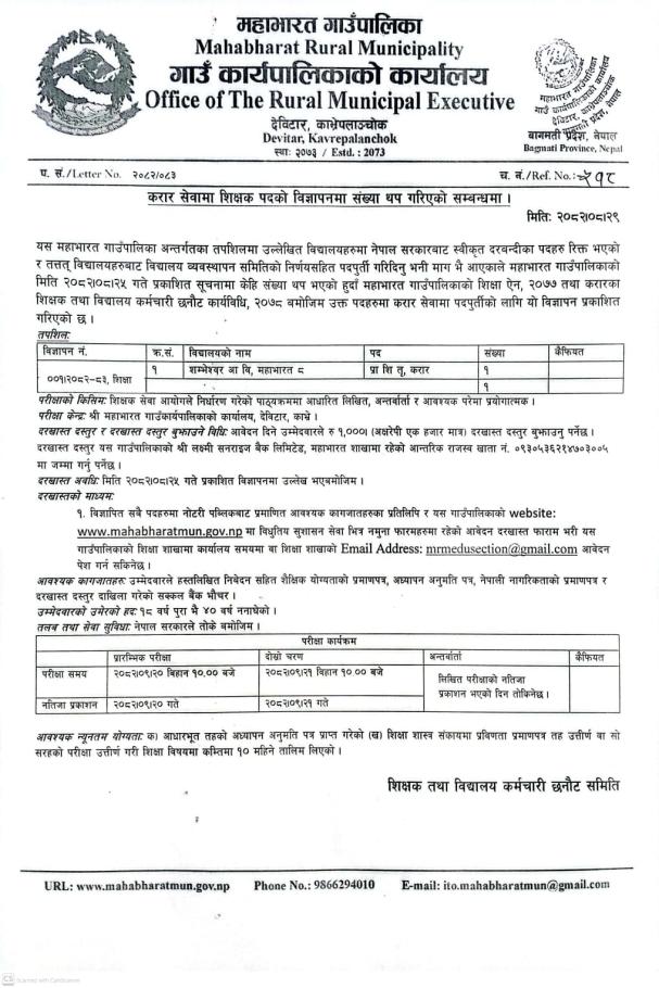 करार सेवामा शीक्षक पदको विज्ञापनमा संख्यमा थप गरिएको सम्बन्धमा ।