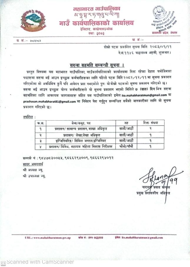 दोस्रो पटक प्रकाशित सरुवा सम्बन्धी सूचना।
