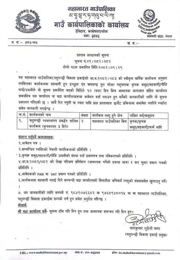 प्रस्ताव आव्हान सम्बन्धी सूचना।
